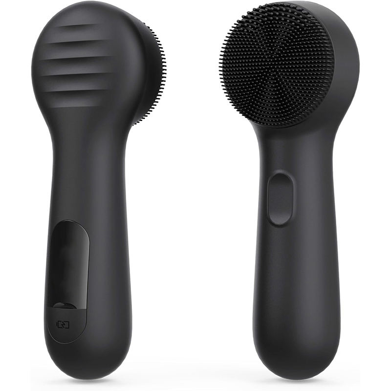 Silicone facial cleansing brush with 400mAh rechargeable battery, deep pore cleaning, soft silicone brush head, low noise (<60dB), customizable warmth therapy, auto-shutoff, and IPX6 waterproof. Ideal for gentle daily cleansing and improved skincare absorption.