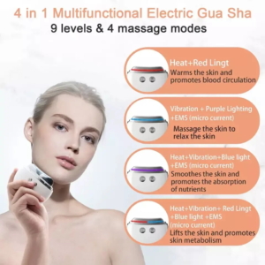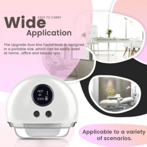 ワイヤレス・ハンドヘルド美容刮痧器は、フェイス、ネック、ボディケアのためにデザインされた多機能スキンケア機器です。刮痧、EMS、バイブレーション、温湿布、マルチカラーライトセラピーを組み合わせ、スキンケア製品の吸収を高めながら、肌をリフトアップし、引き締め、若返らせます。